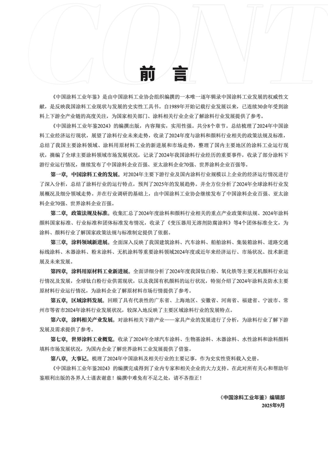 第八章,大事記。梳理了2024年中國涂料及相關行業(yè)的主要記事,作為史實性資料載入史冊。