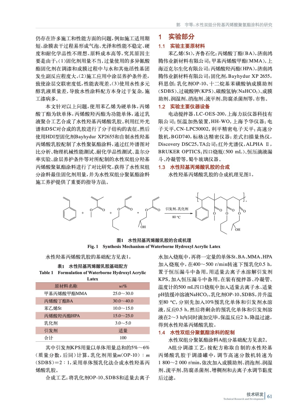 水性雙組分羥基丙烯酸聚氨酯涂料的研究