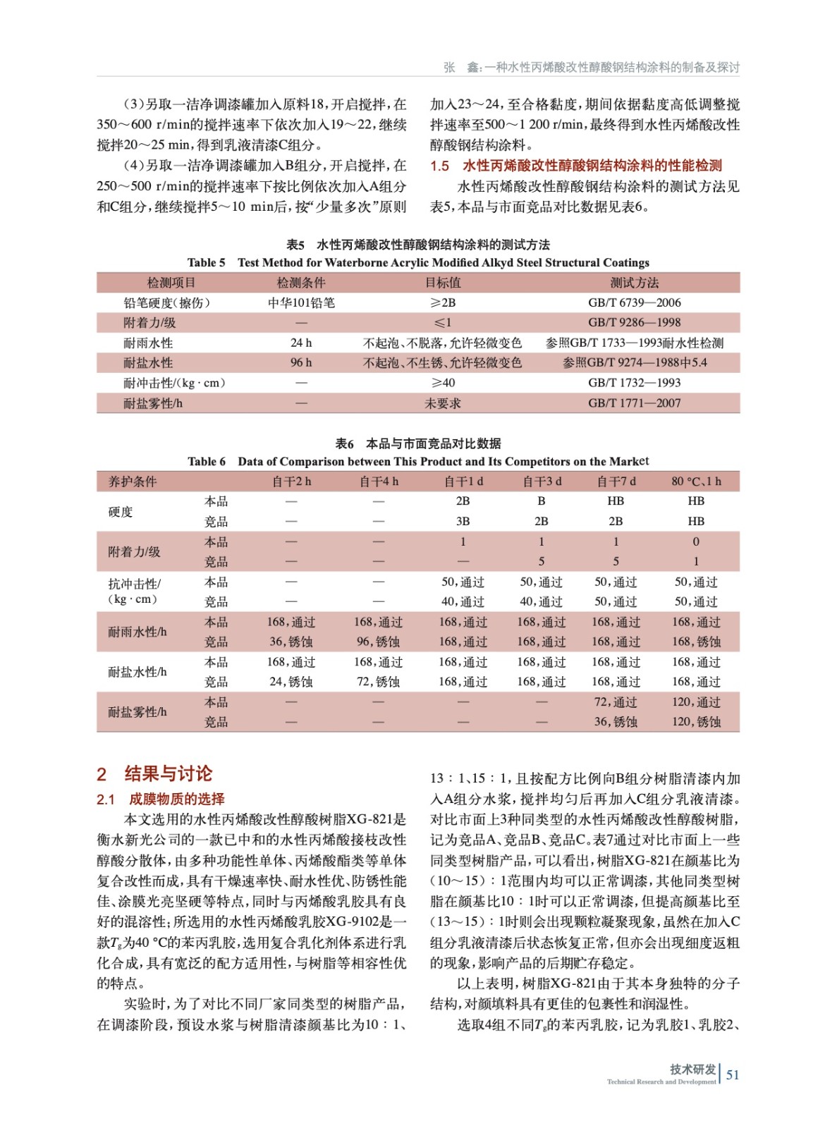 一種水性丙烯酸改性醇酸鋼結(jié)構(gòu)涂料的制備及探討