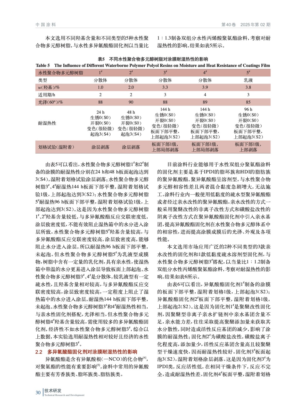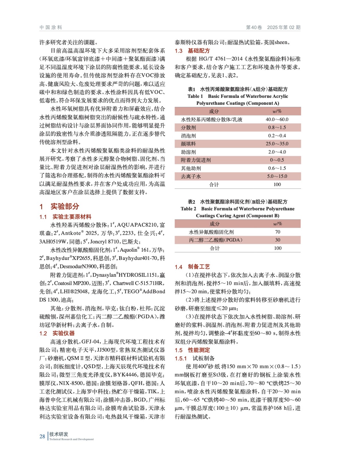 水性丙烯酸聚氨酯涂料耐濕熱性影響因素探究