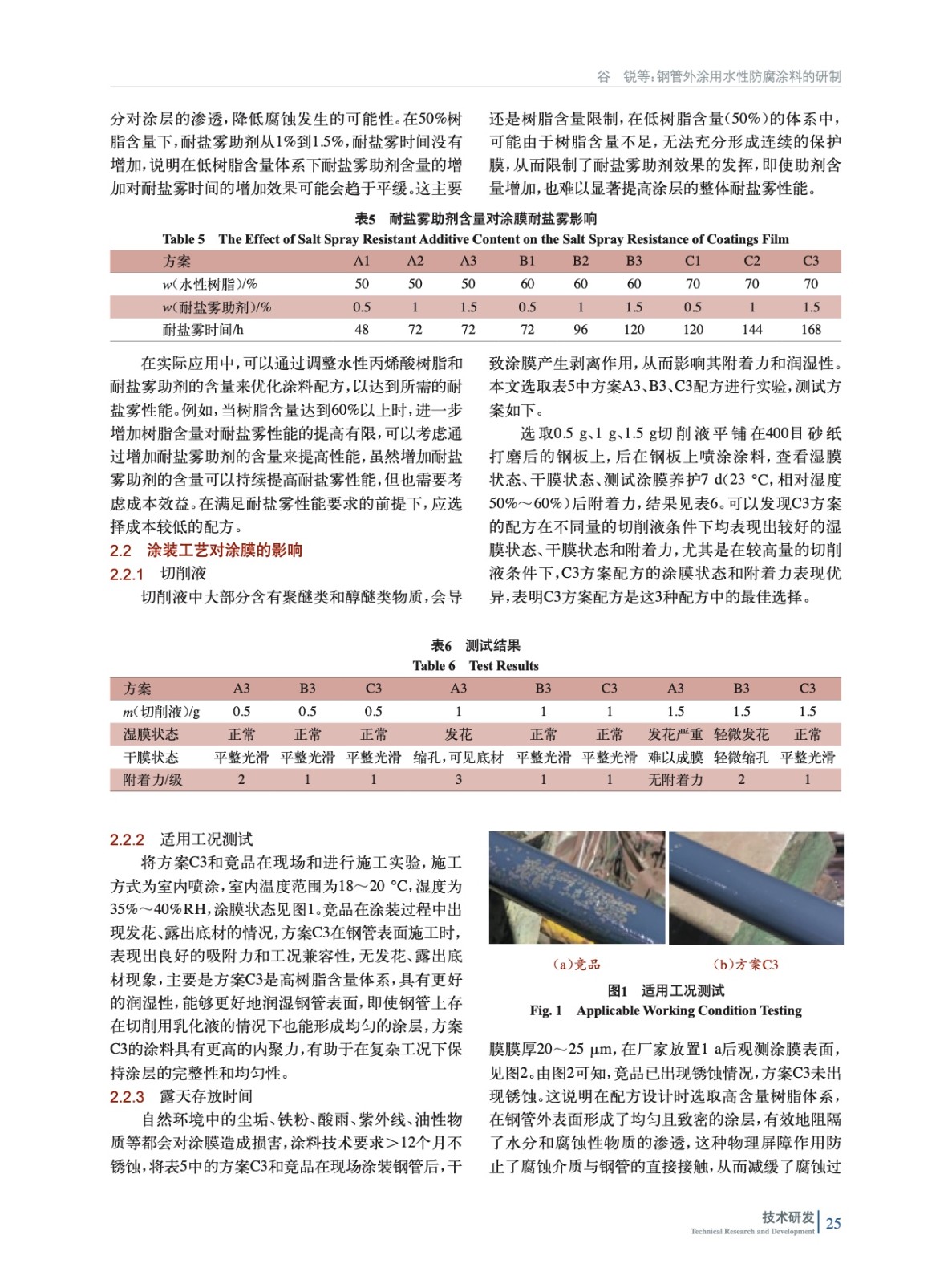 摘要:研制了一種適用于鋼管外涂的水性輕防腐涂料,并對(duì)其技術(shù)要求進(jìn)行了介紹。先通過(guò)樹(shù)脂類(lèi)型的表干時(shí)間對(duì)比確定了使用主要成膜物質(zhì)為水性丙烯酸樹(shù)脂,然后通過(guò)改變水性丙烯酸樹(shù)脂和耐鹽霧助劑在配方中的添加量,評(píng)估其對(duì)涂膜耐鹽霧性能的影響,并測(cè)試了切削液對(duì)涂膜潤(rùn)濕性、附著力的影響。研究結(jié)果表明,方案C3滿足技術(shù)要求,且在鋼管上殘留未干燥的切削用乳化液的施工條件下,表現(xiàn)出良好的吸附力、工況兼容性和防腐能力。