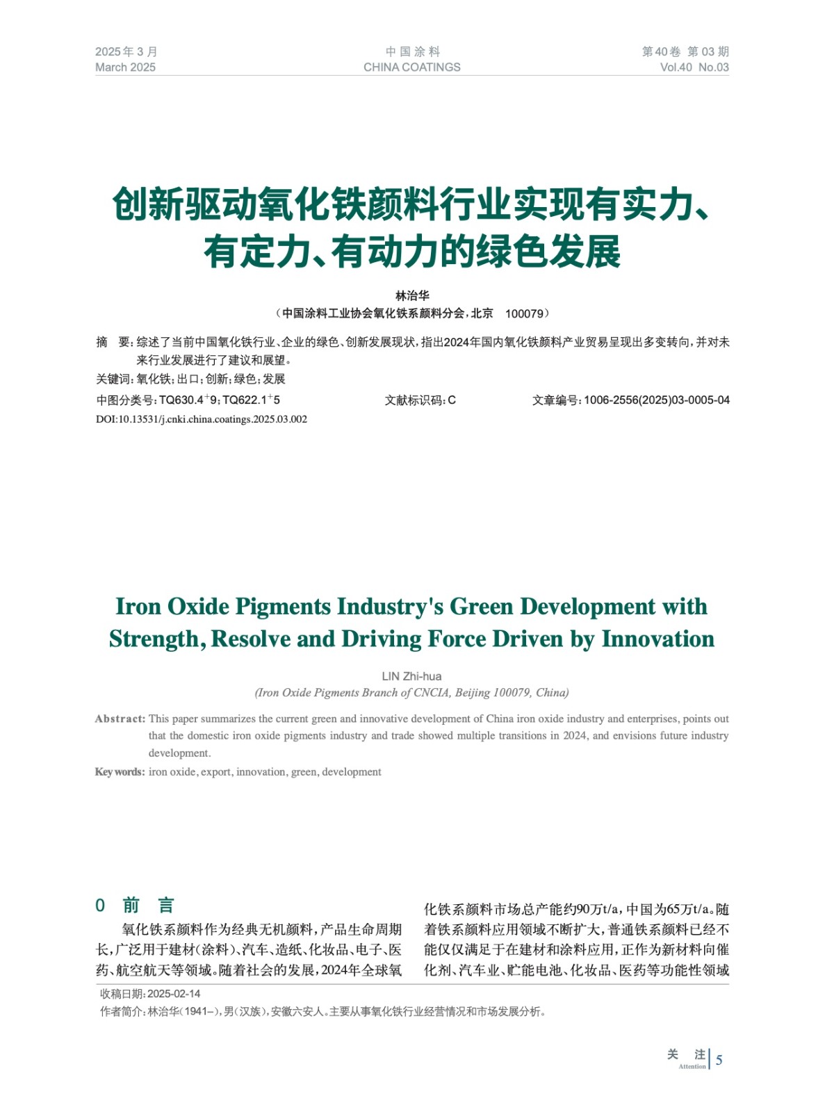 創(chuàng)新驅(qū)動(dòng)氧化鐵顏料行業(yè)實(shí)現(xiàn)有實(shí)力、有定力、有動(dòng)力的綠色發(fā)展