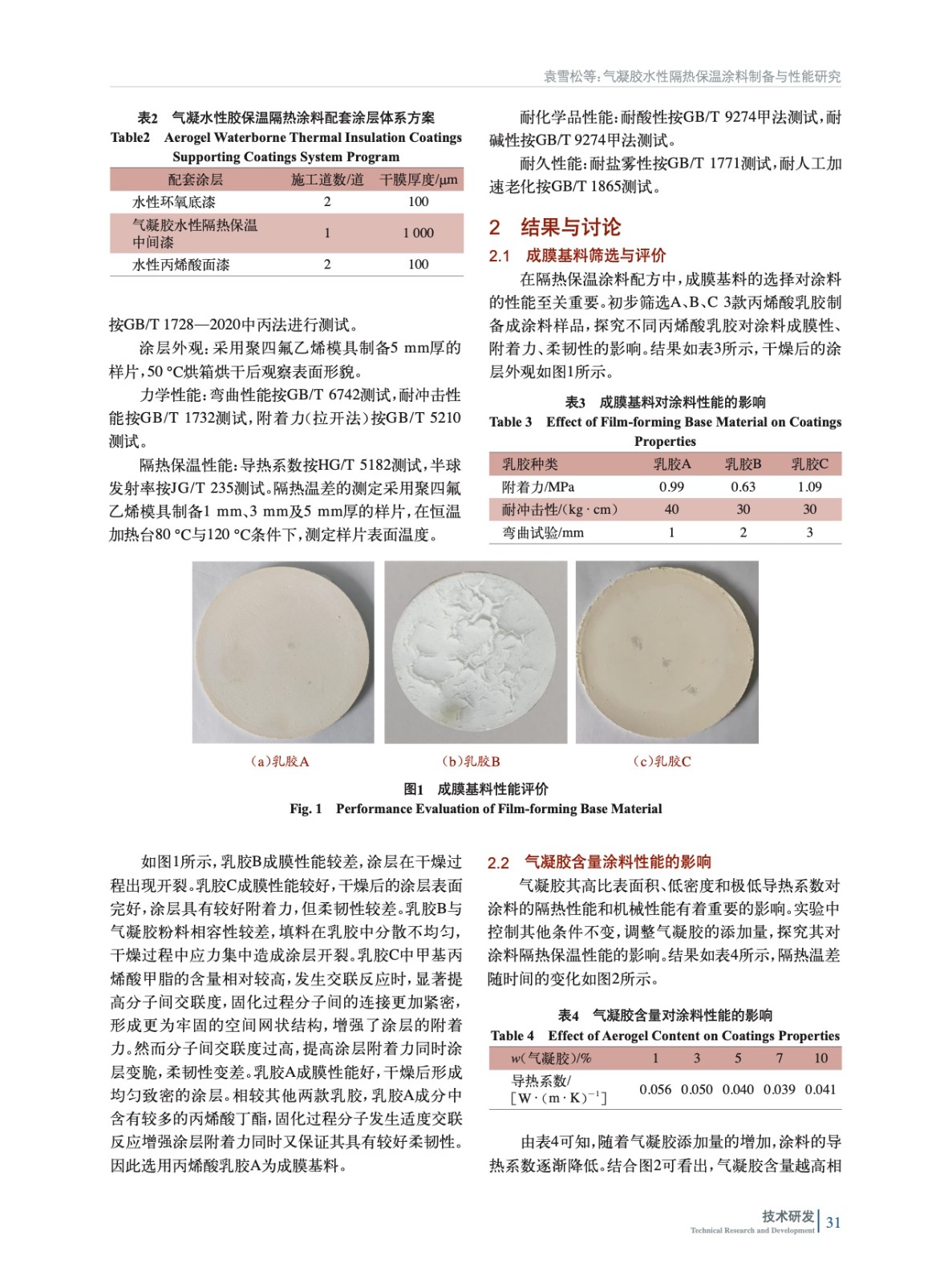 氣凝膠水性隔熱保溫涂料制備與性能研究