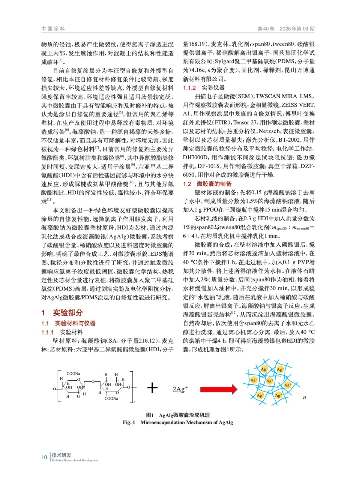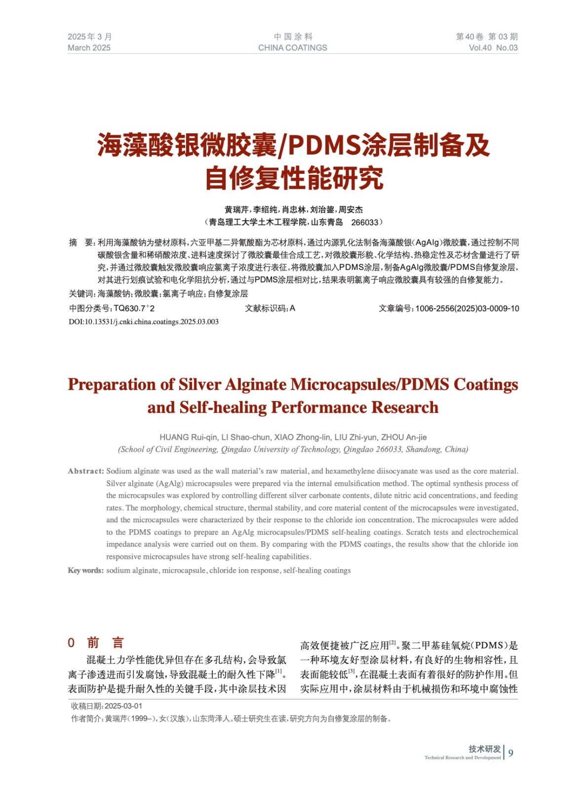 海藻酸銀微膠囊/PDMS涂層制備及自修復(fù)性能研究