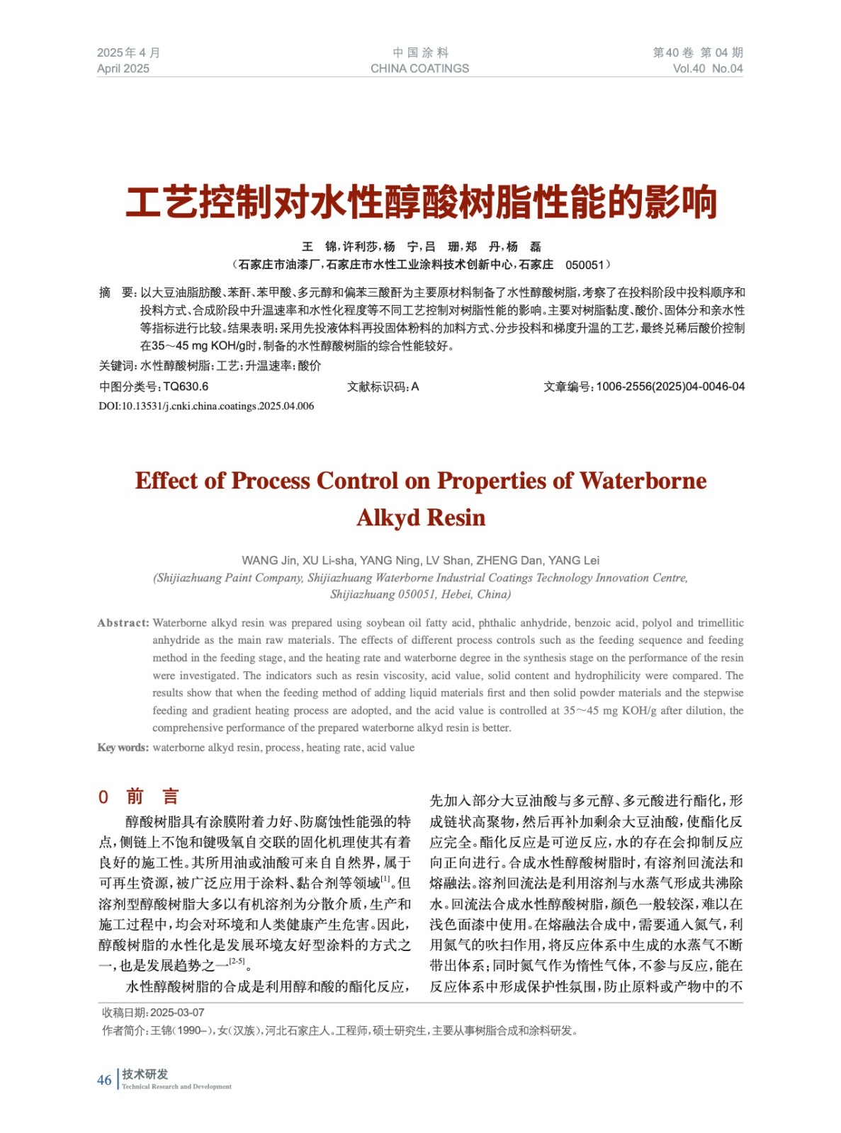 本文系作者@王 錦,許利莎,楊 寧,呂 珊,鄭 丹,楊 磊 授權(quán)中國(guó)涂料網(wǎng)發(fā)表,并經(jīng)中國(guó)涂料網(wǎng)編輯,未經(jīng)允許不得轉(zhuǎn)載,如需轉(zhuǎn)載請(qǐng)聯(lián)系chinacoatingnet@vip.163.com
