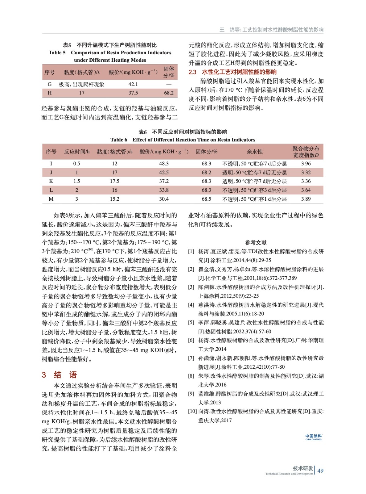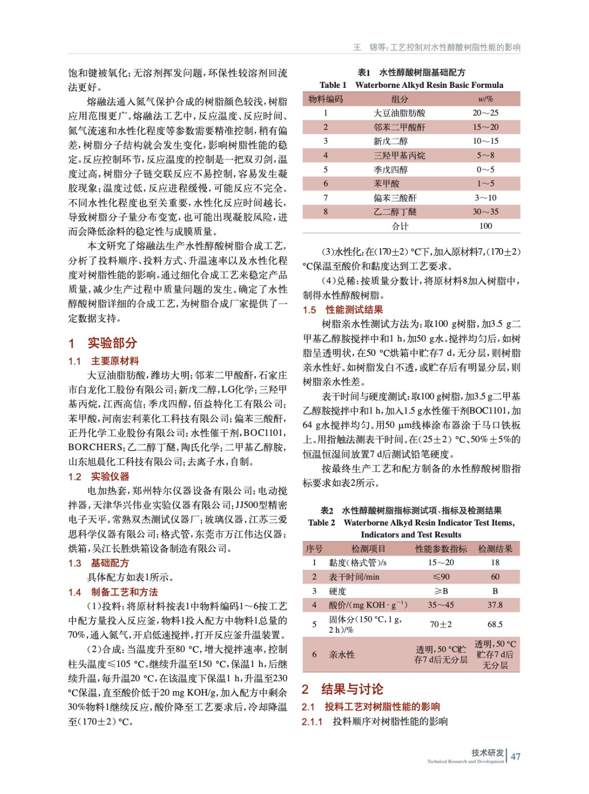工藝控制對(duì)水性醇酸樹脂性能的影響