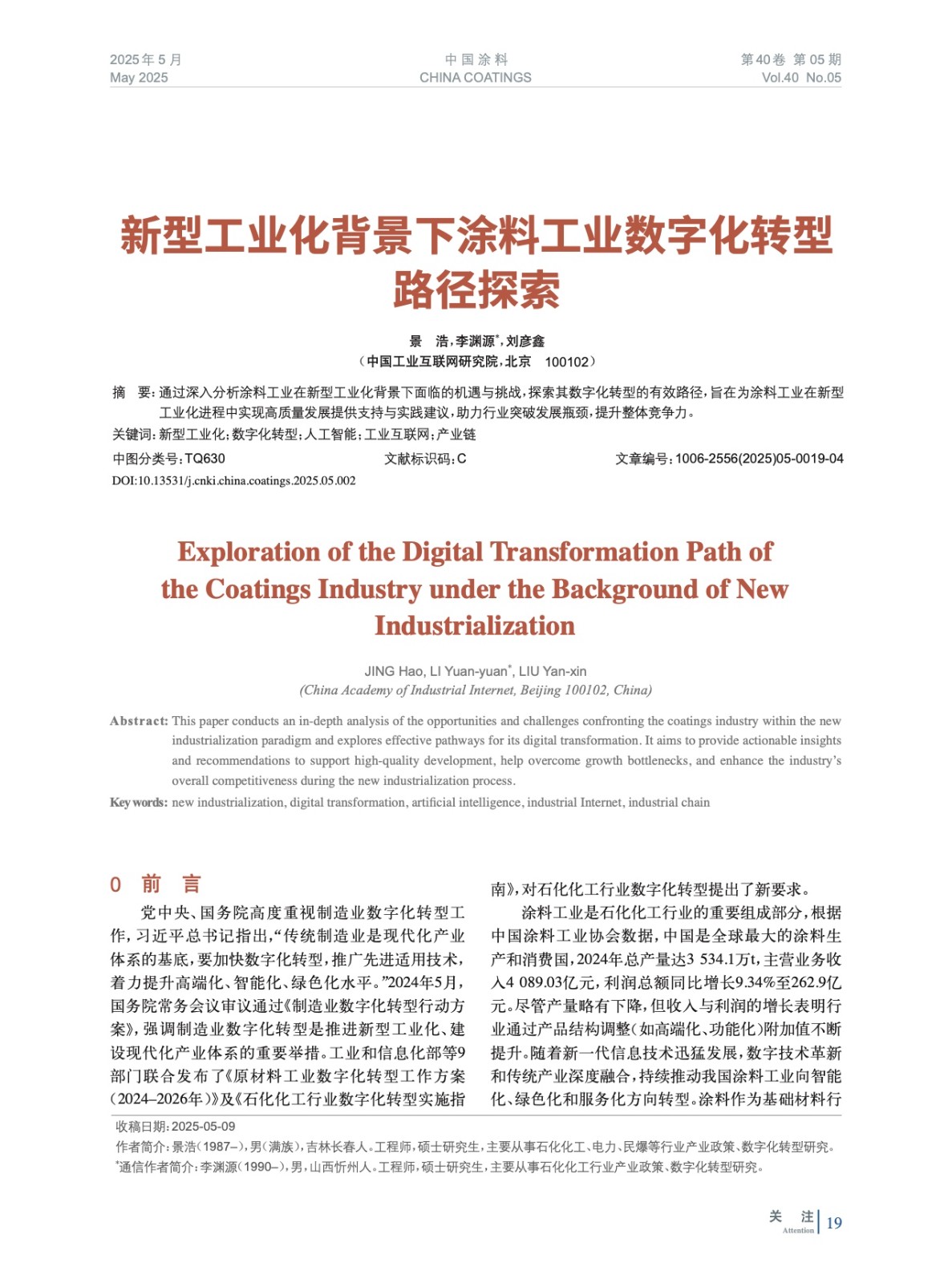 新型工業(yè)化背景下涂料工業(yè)數(shù)字化轉(zhuǎn)型路徑探索
