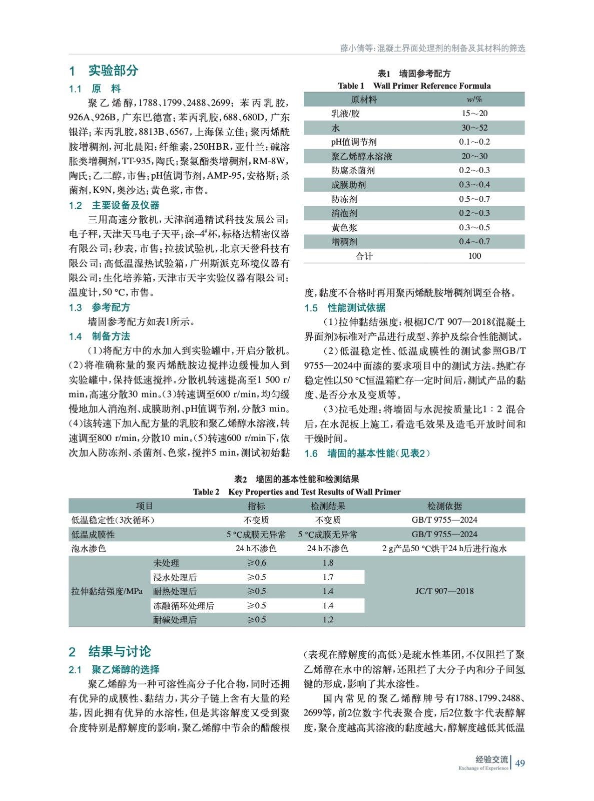 混凝土界面處理劑的制備及其材料的篩選