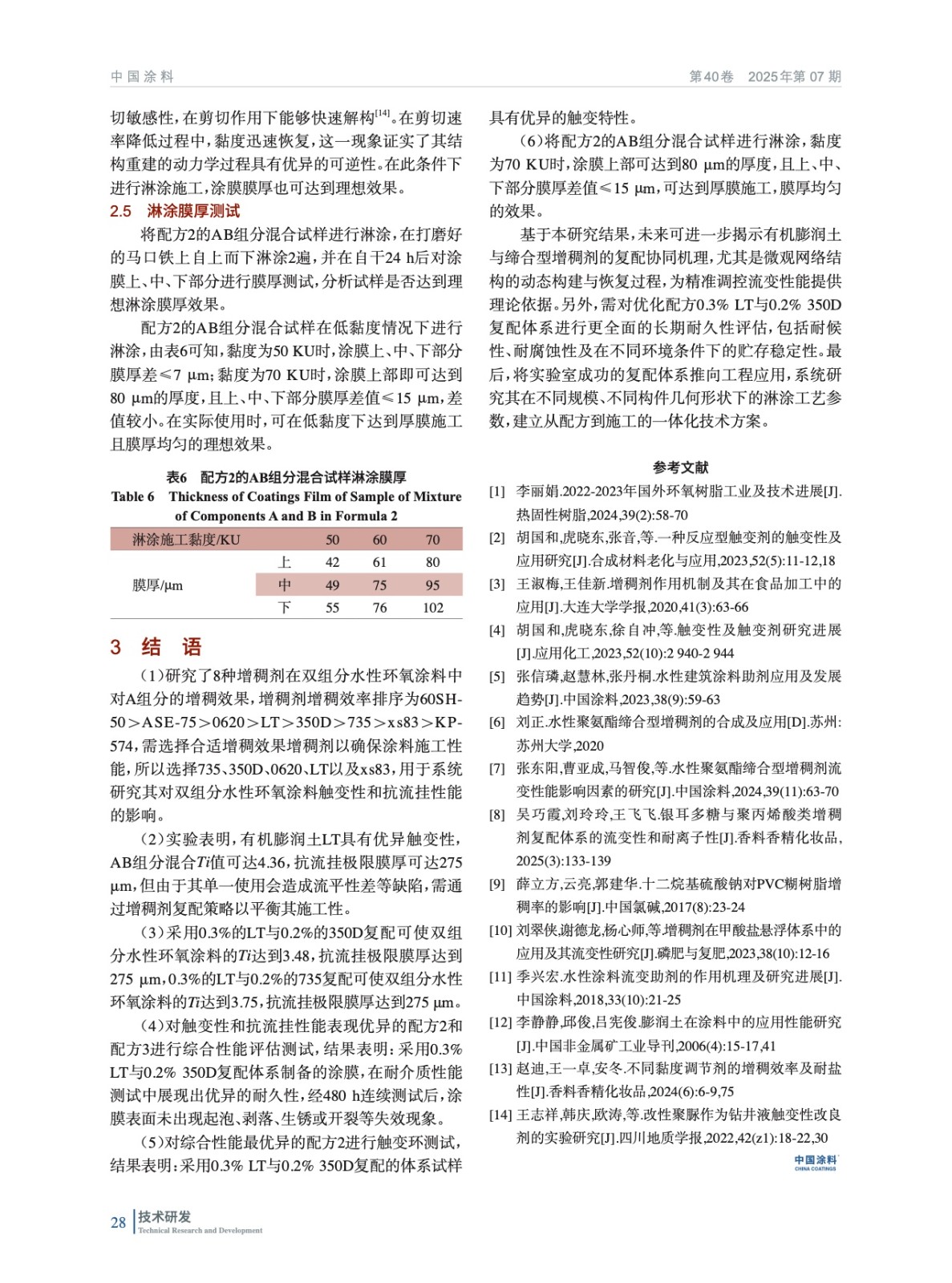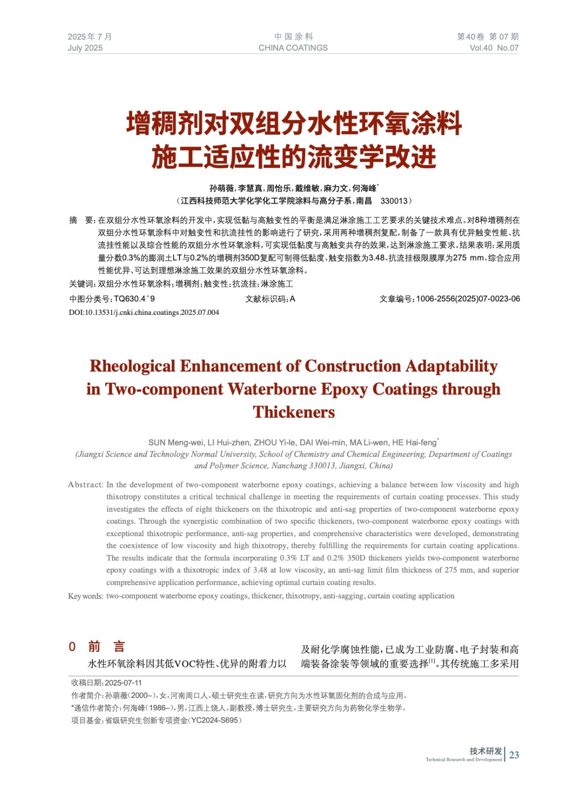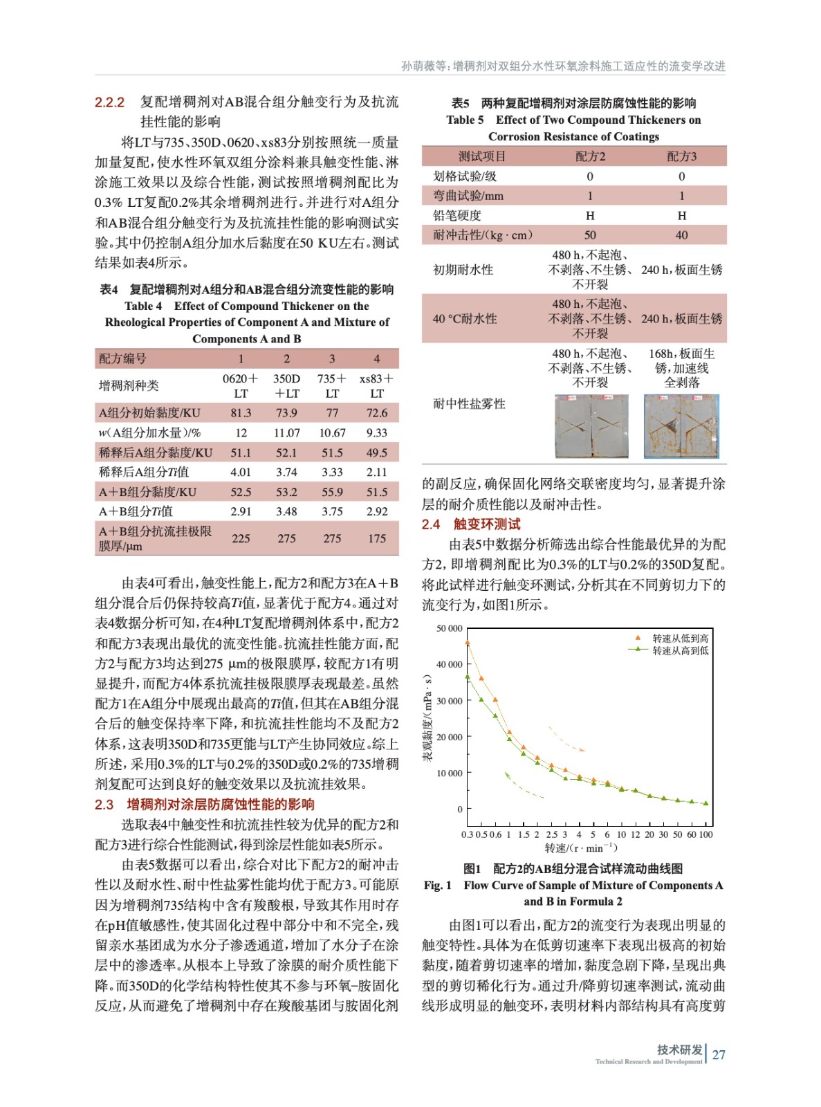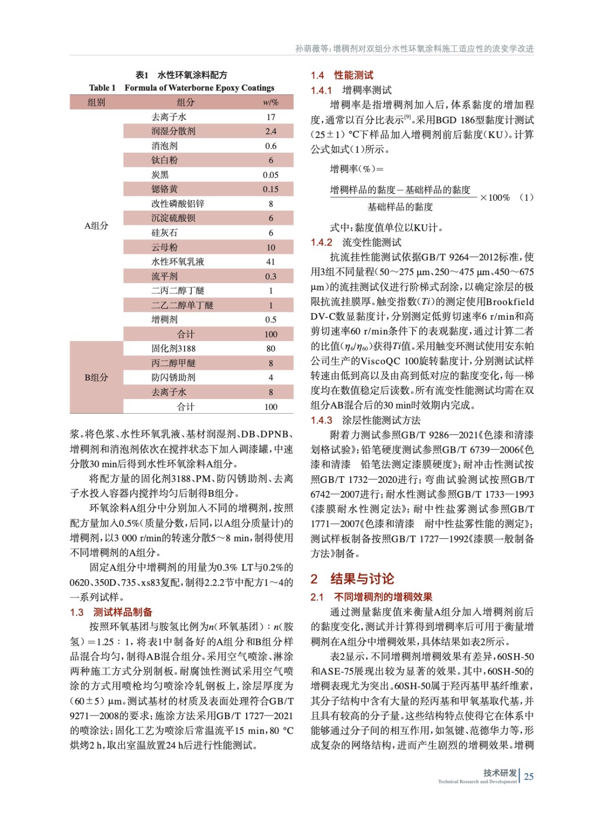 增稠劑對(duì)雙組分水性環(huán)氧涂料施工適應(yīng)性的流變學(xué)改進(jìn)
