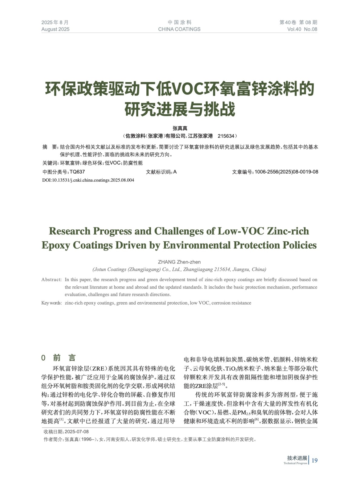 環(huán)保政策驅(qū)動下低VOC環(huán)氧富鋅涂料的研究進(jìn)展與挑戰(zhàn)