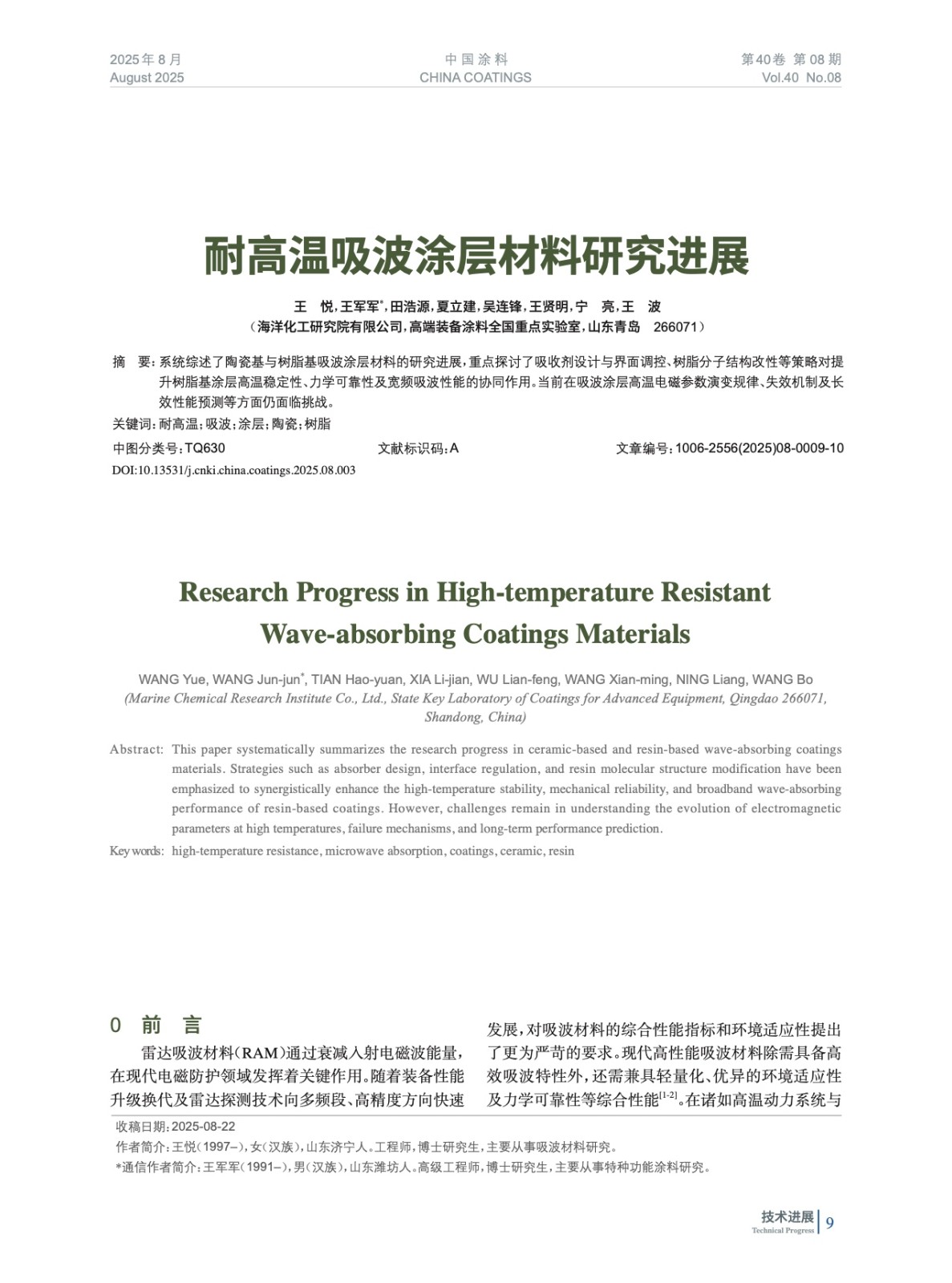 本文系作者@王 悅,王軍軍,田浩源,夏立建,吳連鋒,王賢明,寧 亮,王 波 授權(quán)中國涂料網(wǎng)發(fā)表,并經(jīng)中國涂料網(wǎng)編輯,未經(jīng)允許不得轉(zhuǎn)載,如需轉(zhuǎn)載請聯(lián)系chinacoatingnet@vip.163.com