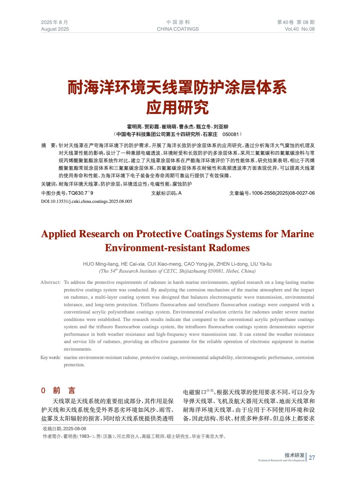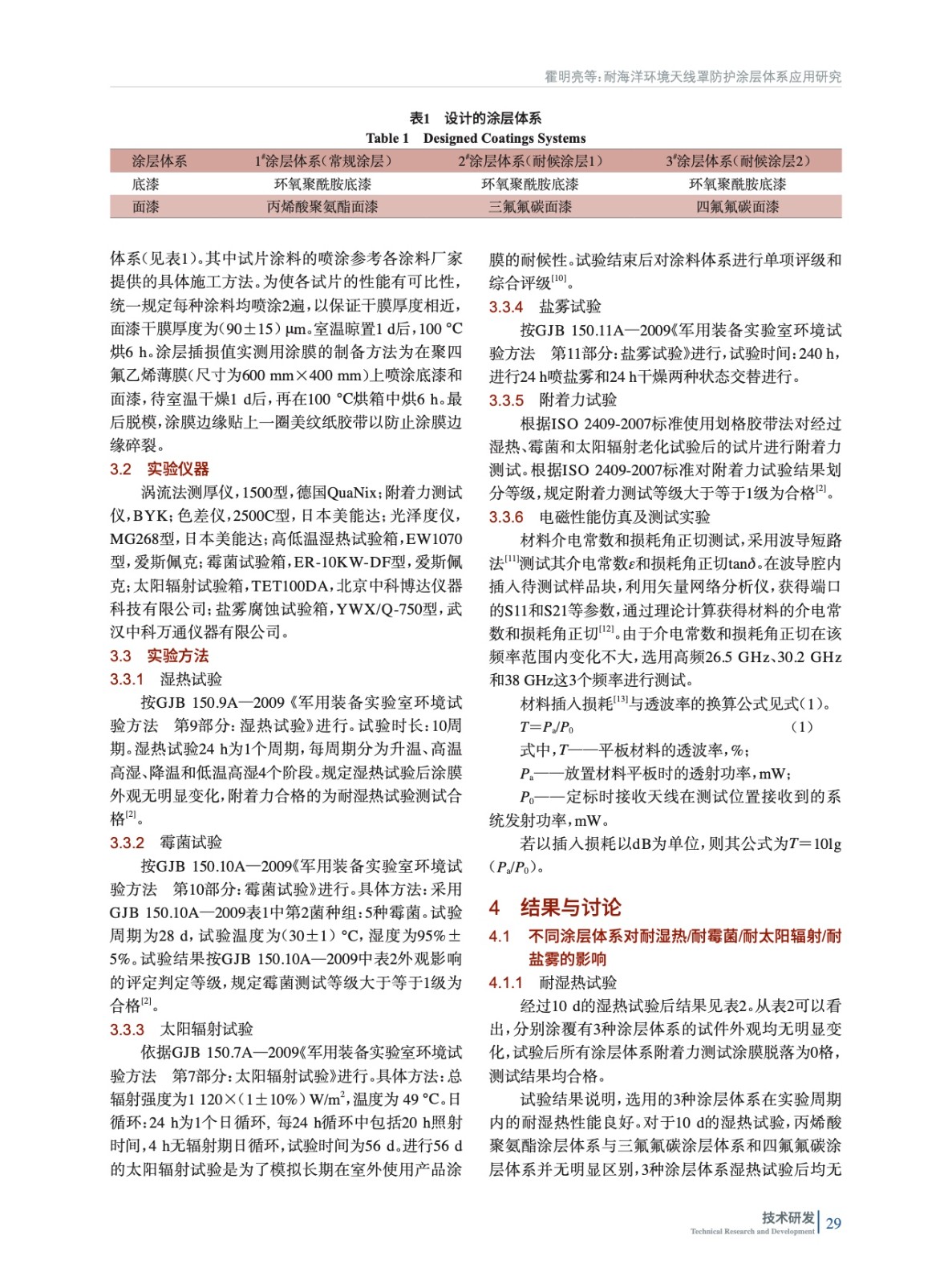 耐海洋環(huán)境天線罩防護涂層體系應(yīng)用研究