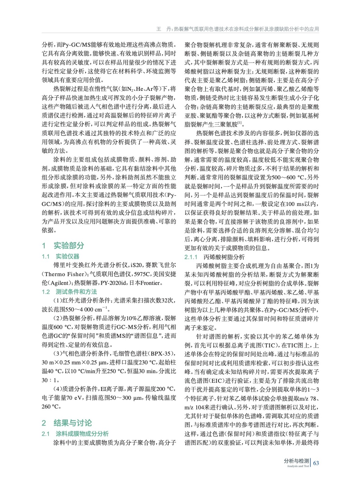 熱裂解氣質(zhì)聯(lián)用色譜技術(shù)在涂料成分解析及涂膜缺陷分析中的應(yīng)用