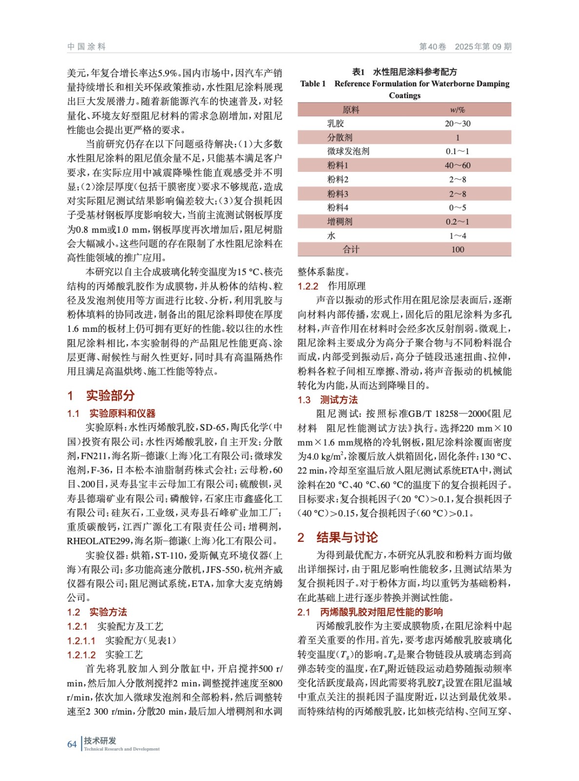 高阻尼水性涂料的制備及其阻尼性能影響因素研究