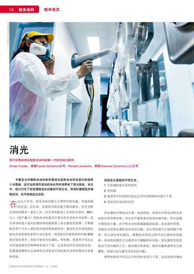 用于環(huán)氧和混合型粉末涂料的新一代活性消光助劑