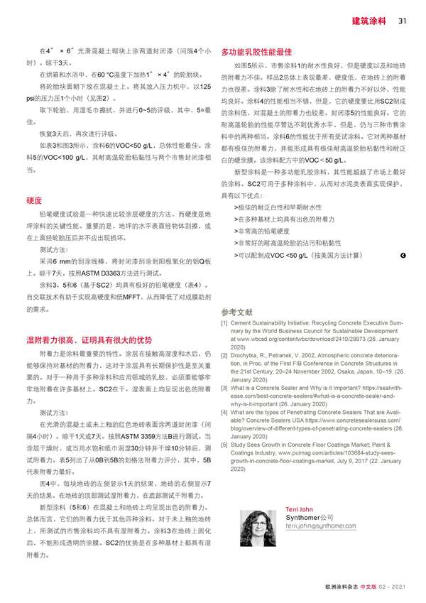 高性能、低VOC混凝土涂料用水性基料