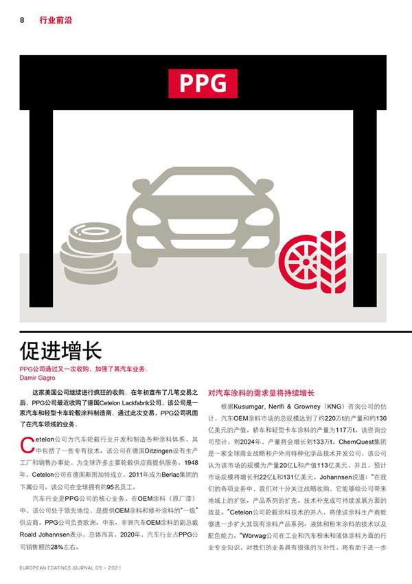 PPG公司通過又一次收購,加強了其汽車業(yè)務(wù)