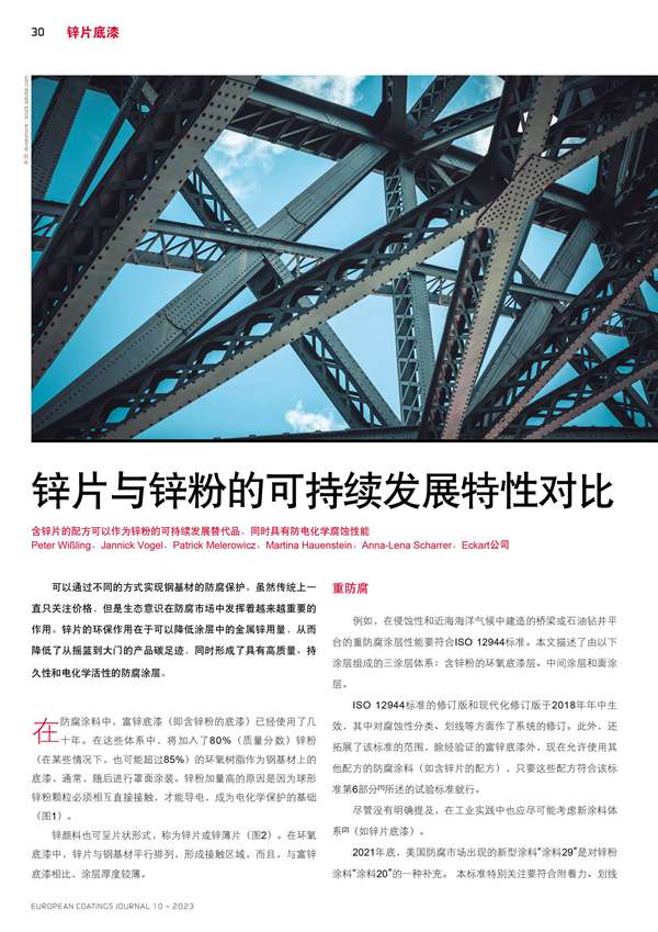 摘要:含鋅片的配方可以作為鋅粉的可持續(xù)發(fā)展替代品, 同時(shí)具有防電化學(xué)腐蝕性能