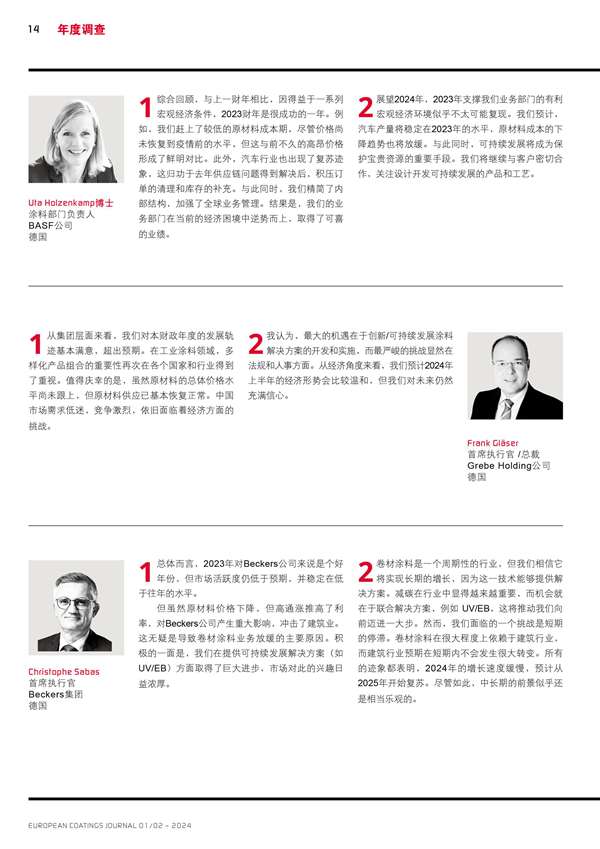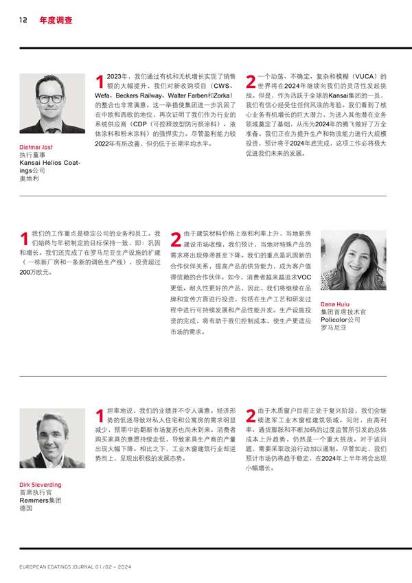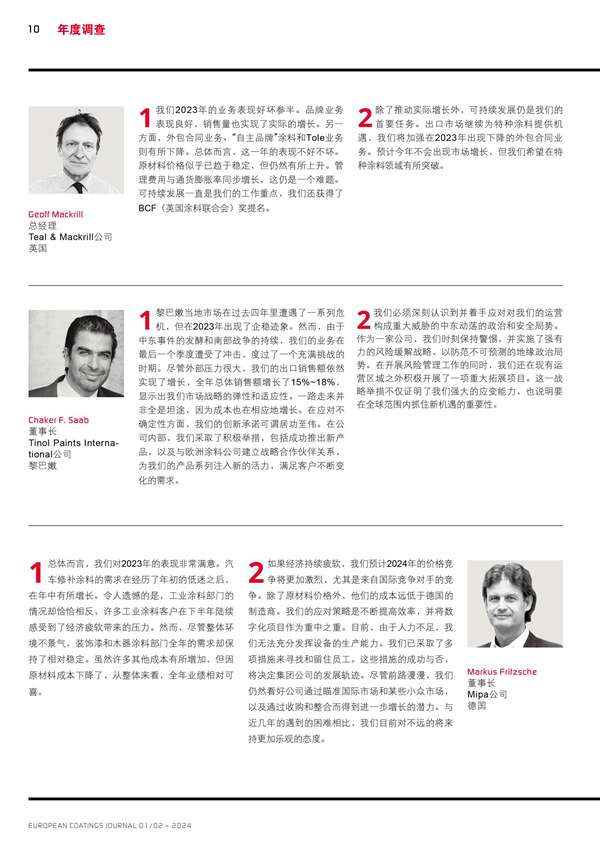 歐洲涂料生產(chǎn)商主要負責人的回顧和展望分享