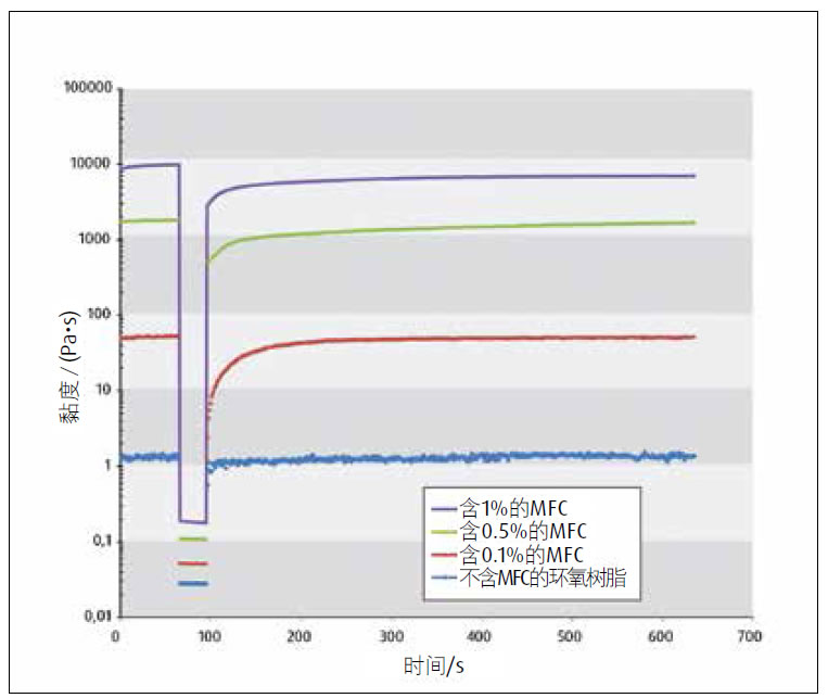 圖5 含MFC和不含MFC的環(huán)氧樣品的時(shí)變黏度恢復(fù)曲線