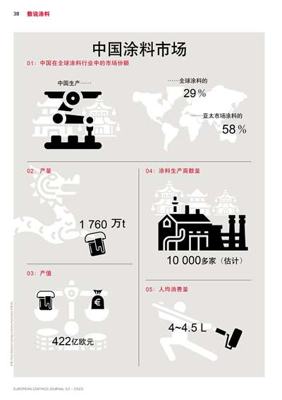 中國在全球涂料行業(yè)中的市場份額:全球涂料的29%,亞太市場涂料的58%